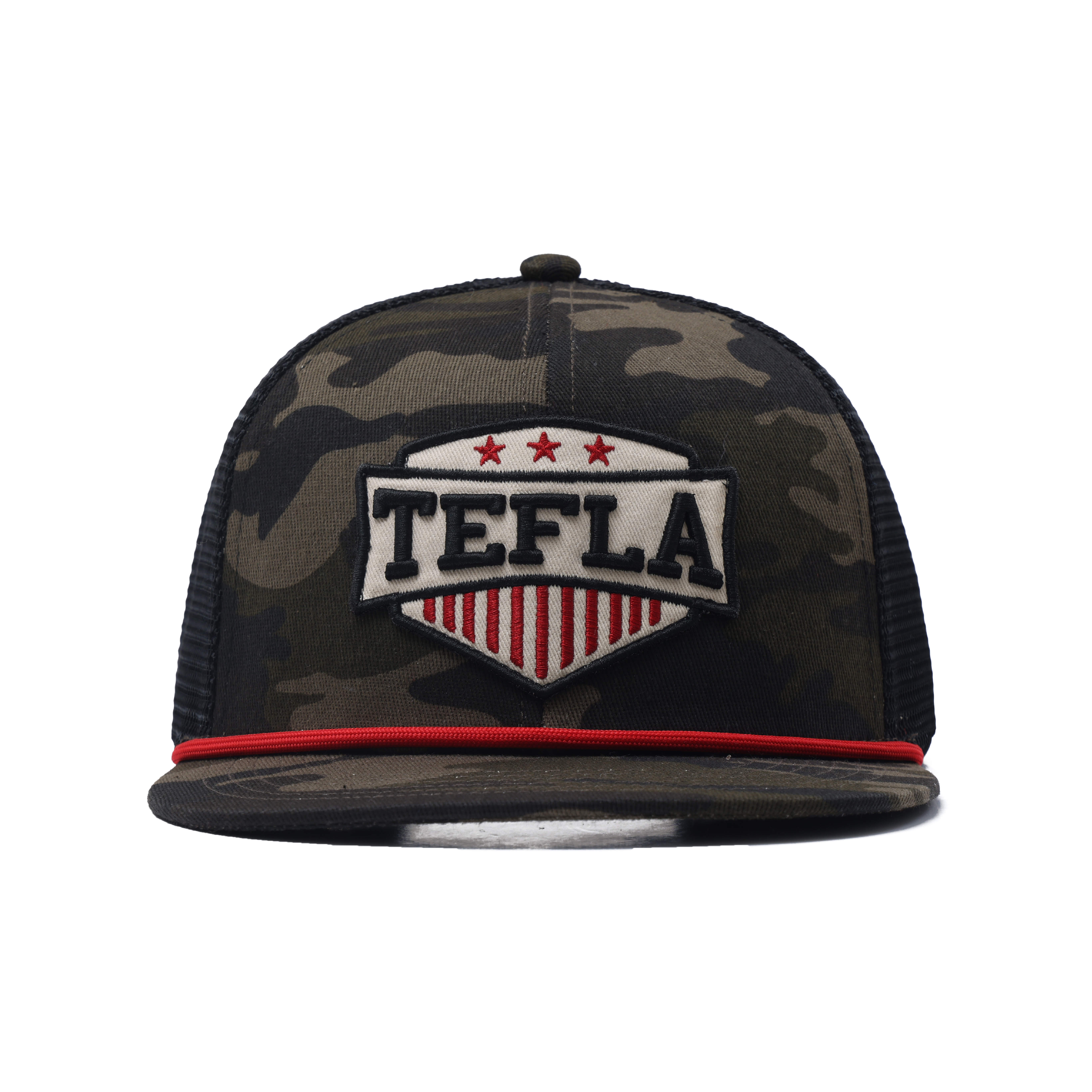 Diseñada con una corona estructurada de 6 paneles y ala plana, esta gorra combina la estética urbana con un diseño práctico. El patrón de camuflaje añade un atractivo visual resistente, mientras que el atrevido logotipo de TEFLA enfatiza la identidad de la marca, convirtiéndolo en una adición versátil a colecciones de moda, productos de estilo de vida y campañas promocionales.