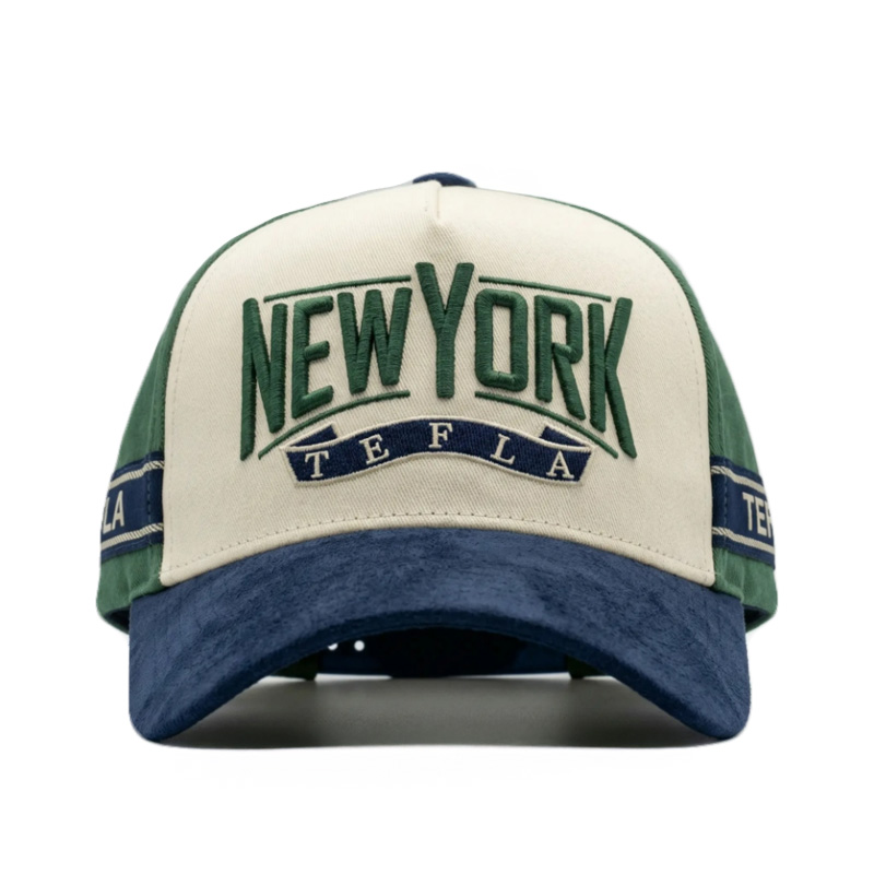 El panel frontal presenta un llamativo logotipo bordado en relieve en 3D 'New York NY' , que brinda gran profundidad, textura e impacto visual. Las costuras de alta densidad garantizan una definición nítida, una excelente durabilidad y un uso duradero, ideal para programas de gran venta, distribución minorista y uso promocional en EE. UU.